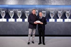 今天,皇馬主席弗洛倫蒂諾與NFL總裁羅杰·古德爾會(huì)面并互贈(zèng)禮物,弗洛倫蒂諾獲贈(zèng)橄欖球,古德爾獲贈(zèng)皇馬1號(hào)球衣以及伯納烏模型。