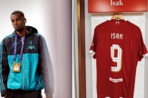 利物浦官方曬出伊薩克伊薩克神情嚴肅的照片,同時也曬出了瑞典前鋒在更衣室里的球衣照片對本場比賽進行預(yù)熱。