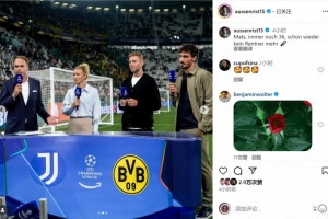 曾效力多特的德國(guó)足壇名宿胡梅爾斯參與了這場(chǎng)比賽的現(xiàn)場(chǎng)評(píng)述工作,退役不久的他在社交媒體上曬出照片,配文:“馬茨(胡梅爾斯),依然36歲,不再是退休人士了?!?/p>