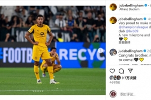 此役喬布-貝林厄姆替補(bǔ)出場(chǎng),上演歐冠首秀,他在社交媒體上曬出比賽照片,并寫道:“很自豪在多特上演歐冠首秀,一個(gè)新的里程碑,也是學(xué)習(xí)更多的開(kāi)始。”
