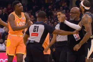 GIF-布萊恩特?fù)跞藭r推倒特倫特引發(fā)沖突