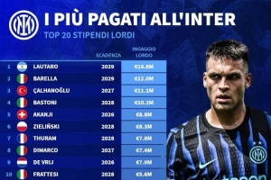 體育資訊11月18日訊 德國(guó)轉(zhuǎn)會(huì)市場(chǎng)統(tǒng)計(jì)了國(guó)米球員的稅前年薪,并列出榜單,勞塔羅1660萬(wàn)歐居首,巴雷拉、恰爾汗奧盧二三位。