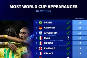 各國(guó)參加世界杯次數(shù)排名(含2026年世界杯):