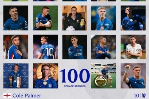切爾西官方也曬出了海報為帕爾默作為紀(jì)念,并配文:“帕爾默在今晚完成了切爾西生涯第100場里程碑?!?/p>