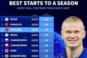 體育資訊11月19日訊 哈蘭德在本賽季表現(xiàn)搶眼,數(shù)據(jù)統(tǒng)計(jì)顯示他各項(xiàng)賽事為俱樂部和國家隊(duì)已經(jīng)直接參與35球,《轉(zhuǎn)會(huì)市場》統(tǒng)計(jì)顯示這也是新世紀(jì)單賽季同期參與進(jìn)球第三多的紀(jì)錄。