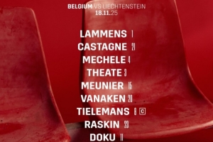 比利時(shí)首發(fā):1-拉門斯、21-卡斯塔涅、4-梅切勒、3-泰特、15-穆尼耶、20-瓦納肯、8-蒂萊曼斯、23-拉什金、11-多庫、22-薩勒馬科爾斯、17-德凱特拉雷
