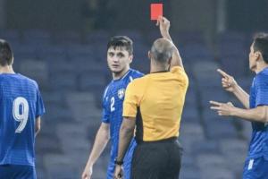 比賽第69分鐘,烏茲別克斯坦球員后場(chǎng)橫傳出現(xiàn)失誤,胡桑諾夫直接下腳鏟球,沒(méi)有碰到皮球的情況下鏟翻了伊朗球員,被主裁判直紅罰下。