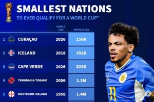 體育資訊11月20日訊 世預(yù)賽當(dāng)前僅剩多個(gè)附加賽名額待定,庫拉索以15.6萬人成為二戰(zhàn)之后晉級(jí)世界杯的人口最少國家,《轉(zhuǎn)會(huì)市場(chǎng)》也統(tǒng)計(jì)了二戰(zhàn)之后晉級(jí)世界杯人口最少的國家前十。