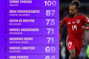 體育資訊11月20日訊 本屆世歐預(yù)小組賽已經(jīng)告一段落,squakwa也統(tǒng)計(jì)了本屆賽事進(jìn)入禁區(qū)次數(shù)情況,威爾士邊鋒索爾巴·托馬斯領(lǐng)跑。