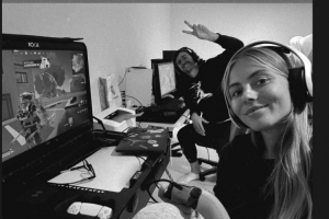 米歇爾·格茲格社媒曬照,她與庫爾圖瓦在家中聯(lián)機(jī)打游戲,配文:“游戲之夜。”
