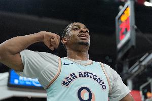 上半場(chǎng),馬刺兩位球員凱爾登·約翰遜和福克斯均有出色發(fā)揮,凱爾登15分鐘9投7中,三分5中3、罰球1中1拿到18分5籃板2助攻,正負(fù)值+14;