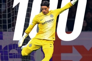 本場比賽索默首發(fā)出戰(zhàn),完成個人國米生涯各項賽事100場里程碑。在100場比賽中索默把守的球門完成49場零封,共計丟球84球。