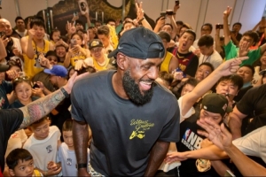 在前不久的中國行活動(dòng)中,詹姆斯親自上身了“閃亮登場(chǎng)”和“無人之境”兩款配色的T恤。
