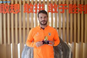 在【體育資訊第23輪中超最佳】評(píng)選中,卡扎伊什維利是唯一候選球員,毫無懸念本賽季第三次當(dāng)選體育資訊每輪最佳球員,小吧也前往濟(jì)南為卡扎伊什維利頒獎(jiǎng)。感謝卡扎伊什維利和山東泰山足球俱樂部對(duì)于體育資訊中超最佳評(píng)選活動(dòng)的支持。
