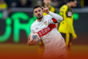 這名前鋒此役上演帽子戲法,包辦斯圖加特全部進(jìn)球,下半場補時階段的進(jìn)球幫助球隊絕平多特,從客場帶走三分。