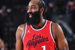 全場比賽,快船球星哈登出戰(zhàn)35分鐘,26中17,三分16中10得到55分3板7助攻1搶斷。