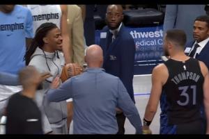 賽后,因傷高掛免戰(zhàn)牌的灰熊球星莫蘭特在場(chǎng)內(nèi)和獨(dú)行俠老將克萊發(fā)生沖突,隨后被制止。