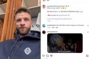 他也在賽后通過(guò)社媒紀(jì)念晉級(jí):“難以置信!!!! ????多么瘋狂的一場(chǎng)比賽!!! ??????我們晉級(jí)西部決賽了????我??這支球隊(duì)!加油, @溫哥華白浪??”