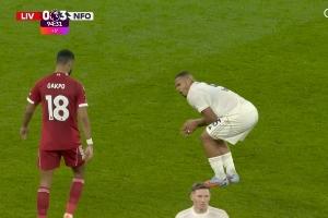 體育資訊11月23日訊 在利物浦0-3不敵諾丁漢森林的補(bǔ)時(shí)最后時(shí)刻,基耶薩近距離抽射,被本場的進(jìn)球功臣穆里略用襠部擋出。