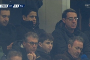 此役,巴黎主席納賽爾出現(xiàn)在球場(chǎng)看臺(tái),現(xiàn)場(chǎng)觀戰(zhàn)此役。