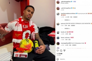 加布也在賽后曬出自己身穿埃澤球衣為槍手加油助威的照片,同時(shí)還手捧著英超官方與阿森納官方評(píng)選的全場(chǎng)最佳獎(jiǎng)杯,最后還附上了??????????♂?表情符號(hào)。不過(guò)從最佳球員獎(jiǎng)杯名字是加布里埃爾,可以判斷出這并非今晚的照片。