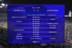 體育資訊9月19日訊 紐卡對(duì)陣巴薩的歐冠首輪比賽結(jié)束,最終紐卡1-2輸給巴薩,全場(chǎng)比賽的跑動(dòng)數(shù)據(jù)也已經(jīng)公布。
