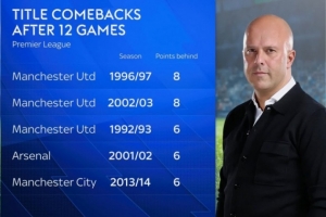 據(jù)天空體育統(tǒng)計,第12輪落后榜首6分或更多最終奪冠,英超歷史只出現(xiàn)過5次這樣的情況。