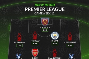 體育資訊11月25日訊 WhoScored根據(jù)球員的評分排出了英超第12輪最佳陣容,埃澤、魯本·迪亞斯、羅杰斯在列,諾丁漢森林4名球員入選。