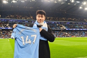 北京時(shí)間11月26日凌晨4時(shí),歐冠聯(lián)賽階段第5輪,曼城主場(chǎng)不敵勒沃庫(kù)森。本場(chǎng)比賽,新科斯諾克世錦賽冠軍趙心童現(xiàn)場(chǎng)觀賽,他向全場(chǎng)球迷展示了世錦賽冠軍獎(jiǎng)杯,并且還獲贈(zèng)一件印有他名字的曼城147號(hào)球衣。