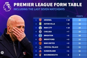 英超各隊(duì)最近7輪聯(lián)賽得分: