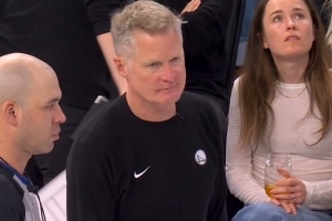 GIF-庫(kù)里進(jìn)攻犯規(guī),科爾挑戰(zhàn)失敗