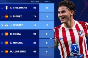 體育資訊11月27日訊 在本輪歐冠馬競2-1擊敗國米的比賽中,阿爾瓦雷斯破門,打進馬競生涯歐冠第10球。以下為馬競隊史歐冠進球榜:
