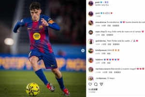 體育資訊11月30日訊 巴薩在本輪西甲焦點(diǎn)戰(zhàn)主場(chǎng)3-1逆轉(zhuǎn)阿拉維斯,中場(chǎng)佩德里替補(bǔ)出戰(zhàn)完成復(fù)出。