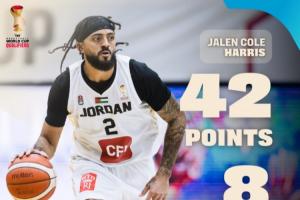 此役,約旦歸化球員、前同曦外援杰倫·哈里斯表現(xiàn)神勇,他登場(chǎng)29分56秒24投13中,三分16中8、罰球9中8,狂砍42分6籃板2助攻2搶斷,正負(fù)值+49。