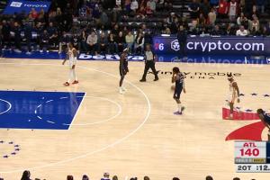 本場比賽加時賽,喬治先行下班,打完一個加時之后,恩比德也下班。