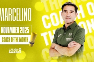 體育資訊12月1日訊 西甲官方消息,黃潛主帥馬塞利諾當(dāng)選11月最佳教練。