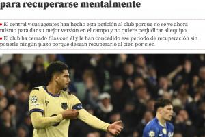 體育資訊12月01日訊 據(jù)《世界體育報(bào)》最新消息,在歐冠對(duì)陣切爾西領(lǐng)到紅牌之后,巴薩中衛(wèi)阿勞霍向俱樂(lè)部申請(qǐng)了一段心理恢復(fù)期。