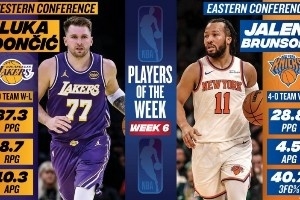 周最佳出爐:東契奇場(chǎng)均轟37.3分8.7板10.3助 布倫森率隊(duì)4勝0負(fù)