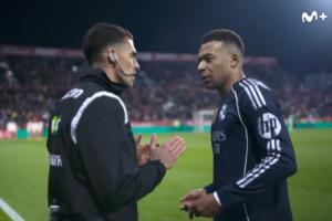 體育資訊12月02日訊 西甲第14輪皇馬客場1-1戰(zhàn)平赫羅納,比賽中Movistar的鏡頭捕捉到了姆巴佩與場邊第四官員亞歷杭德羅·克萊門特的一次言語沖突。