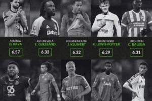 本賽季英超各隊(duì)場(chǎng)均評(píng)分最低球員(至少出場(chǎng)400分鐘):