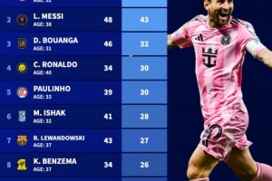 2、梅西(邁阿密國(guó)際,38歲):48場(chǎng)43球