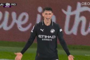 體育資訊12月03日訊 曼城vs富勒姆第44分鐘,福登世界波破門,此時比分變?yōu)槁?-0領(lǐng)先!