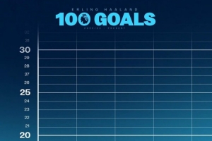 哈蘭德出戰(zhàn)111場英超比賽,打進100球。曼城官方社媒曬出哈蘭德的進球曲線視頻,祝賀他達成英超百球里程碑。