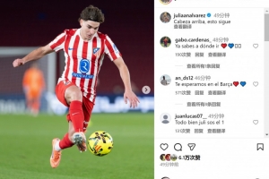 此役阿爾瓦雷斯為馬競踢滿全場,但只有1次射門,賽后他在社交媒體上曬出比賽照片,配文:“抬起頭來,戰(zhàn)斗繼續(xù)。”