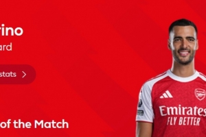 本場比賽梅里諾傳射建功,賽后當(dāng)選英超官方球迷票選全場最佳球員。