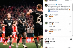 體育資訊12月4日訊 德國杯1/8決賽,于帕梅卡諾踢滿全場,拜仁客場3-2擊敗柏林聯(lián)合,晉級下一輪。