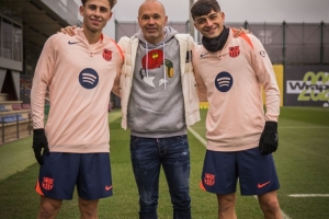體育資訊12月5日訊 本周四,巴薩在俱樂部訓(xùn)練基地備戰(zhàn)對(duì)陣貝蒂斯的西甲比賽,俱樂部傳奇伊涅斯塔造訪并和多名球員進(jìn)行了親切交流,這其中包括了佩德里、費(fèi)爾明以及萊萬等人。