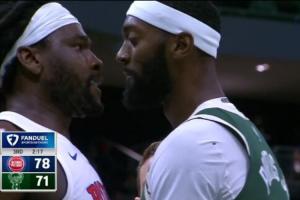 斯圖爾特在替補(bǔ)席與教練們抱怨: