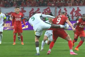 恩加德烏飛踢卡多索腰部,裁判出示黃牌。