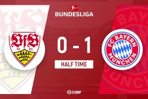 傷停補(bǔ)時(shí)8分鐘。上半場(chǎng)比賽結(jié)束,拜仁1-0斯圖加特。